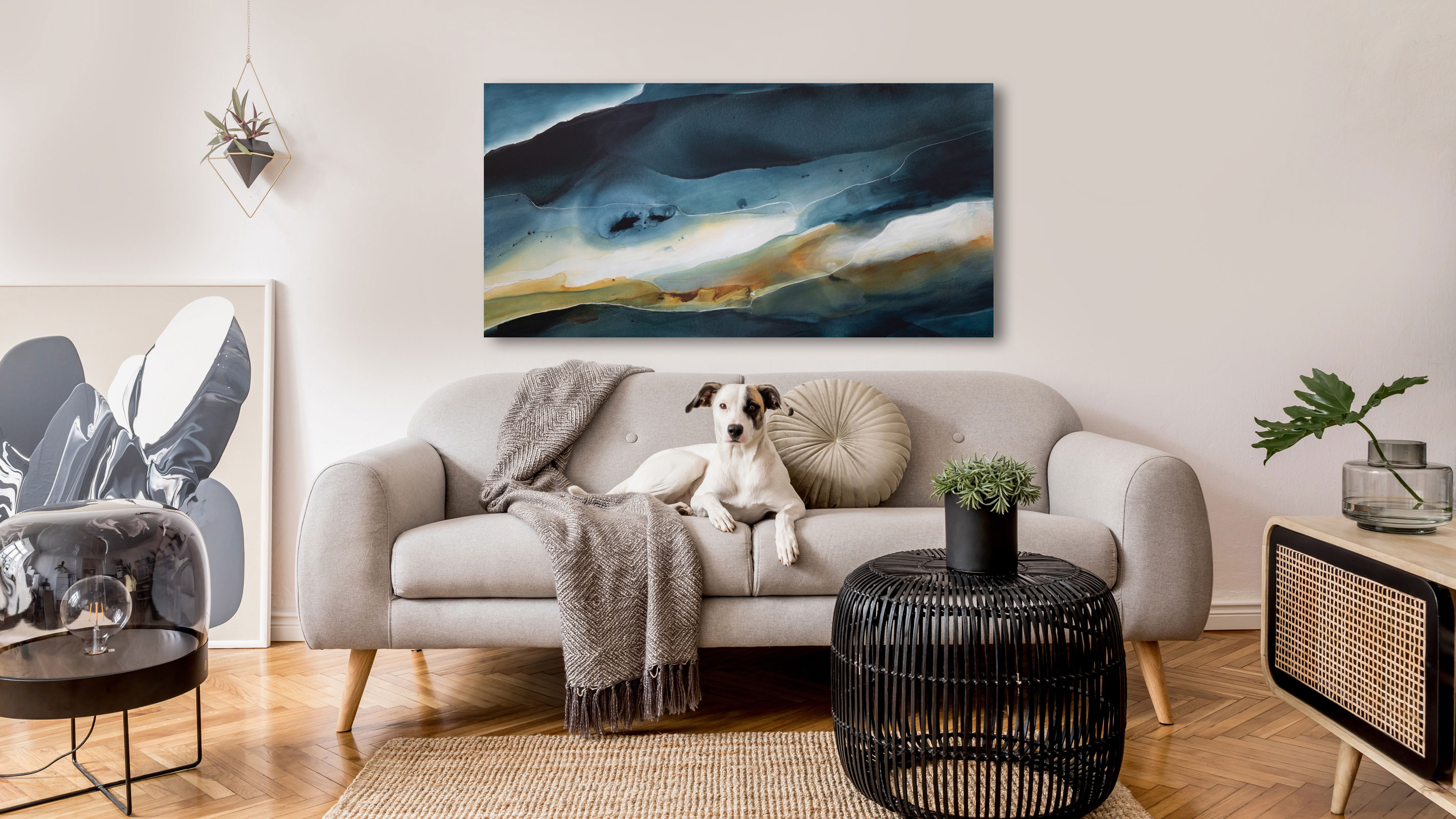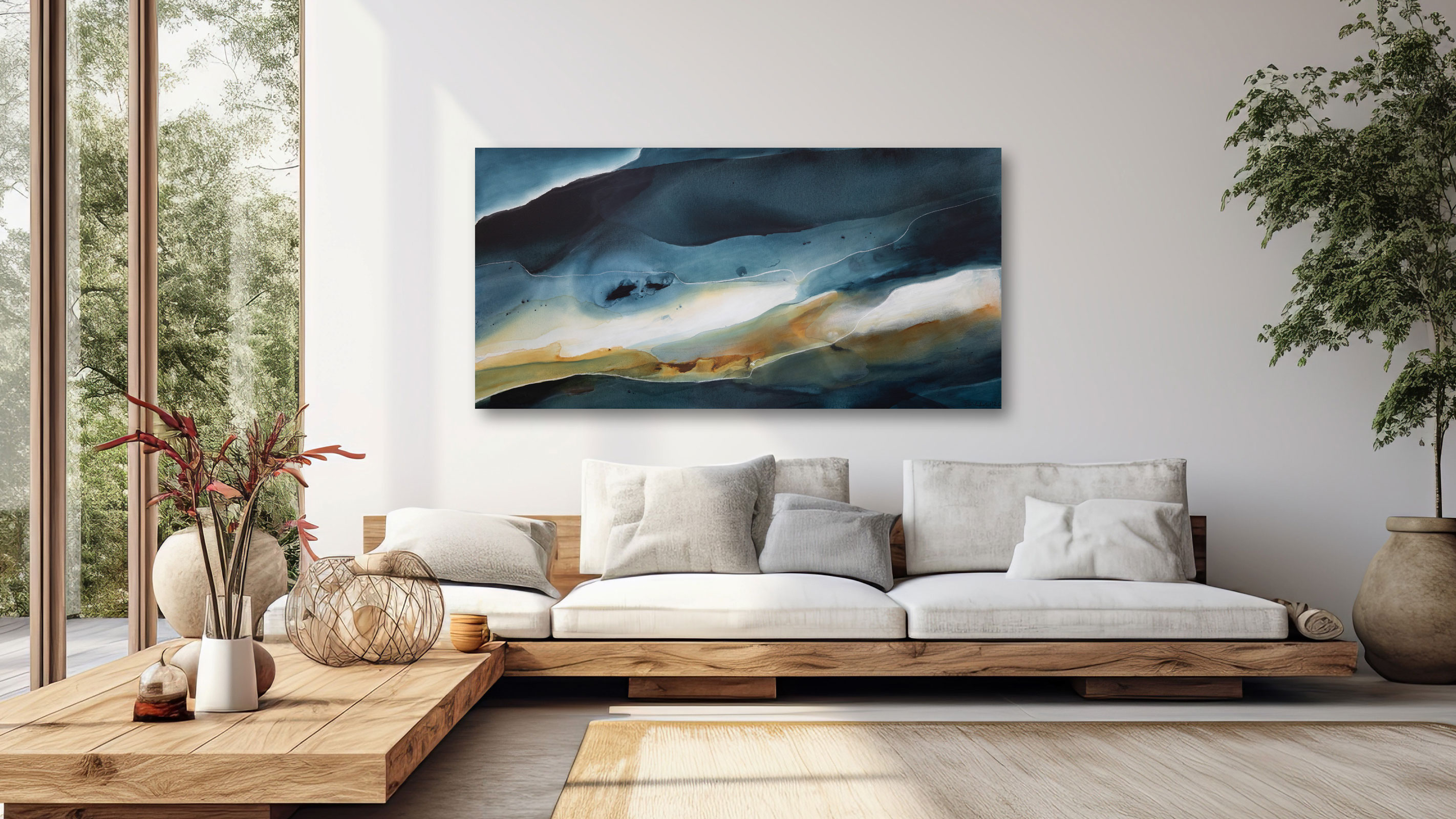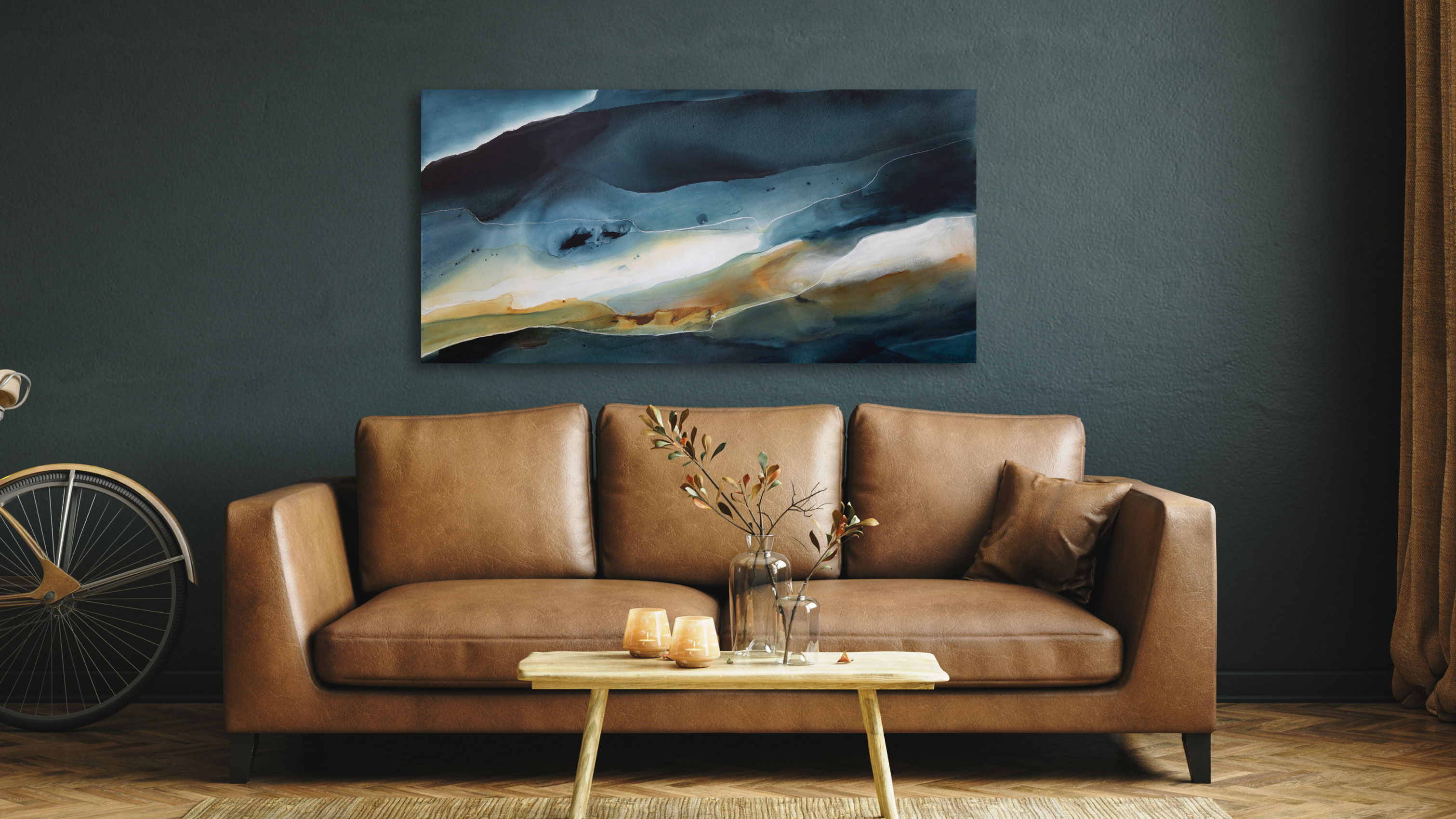 Amalfi is inspired by my morning walks along the Noosa National Park coastal track. The early morning sun seems to dance across the ocean towards me, highlighting numerous shades of blue in its path.