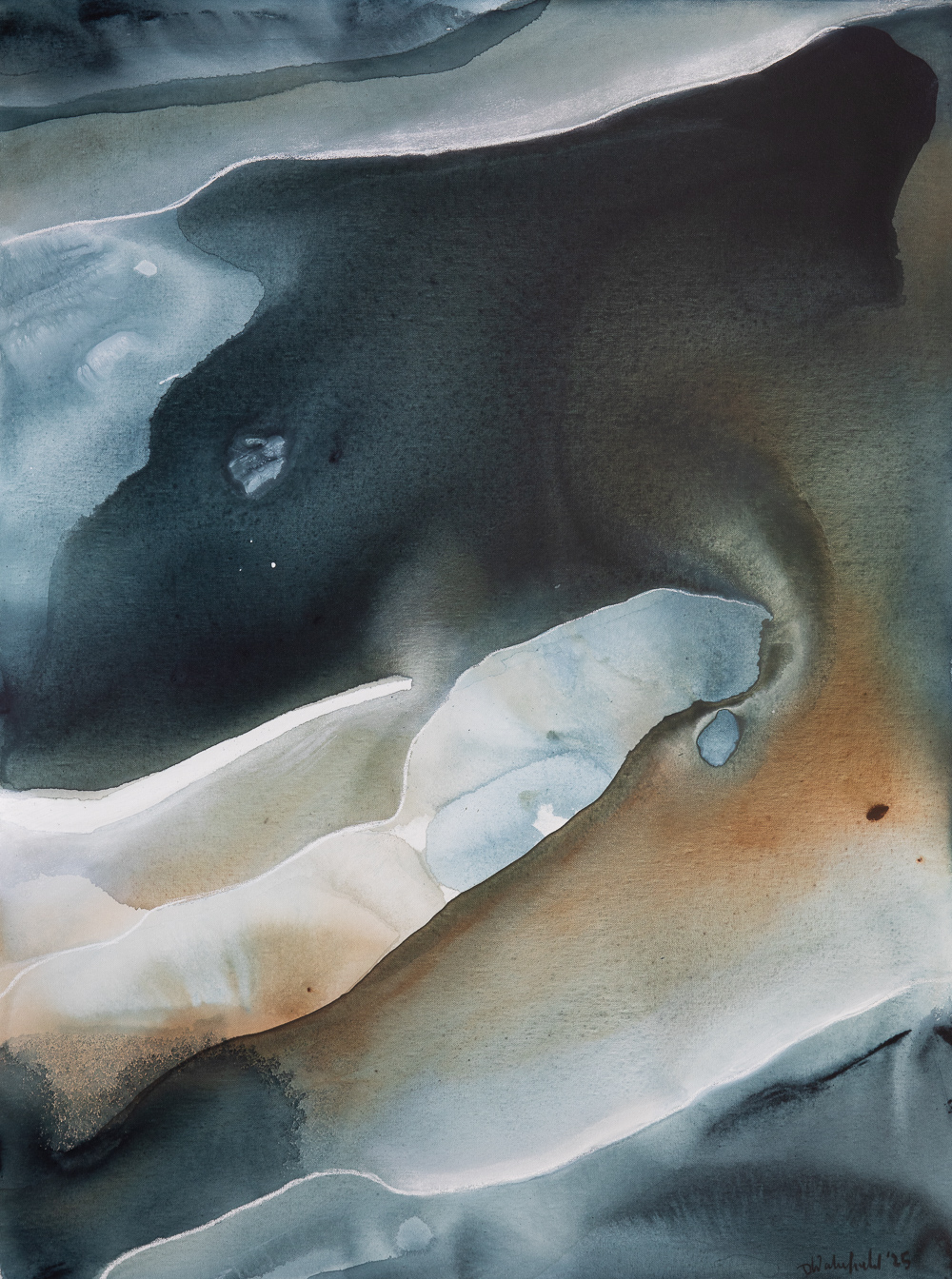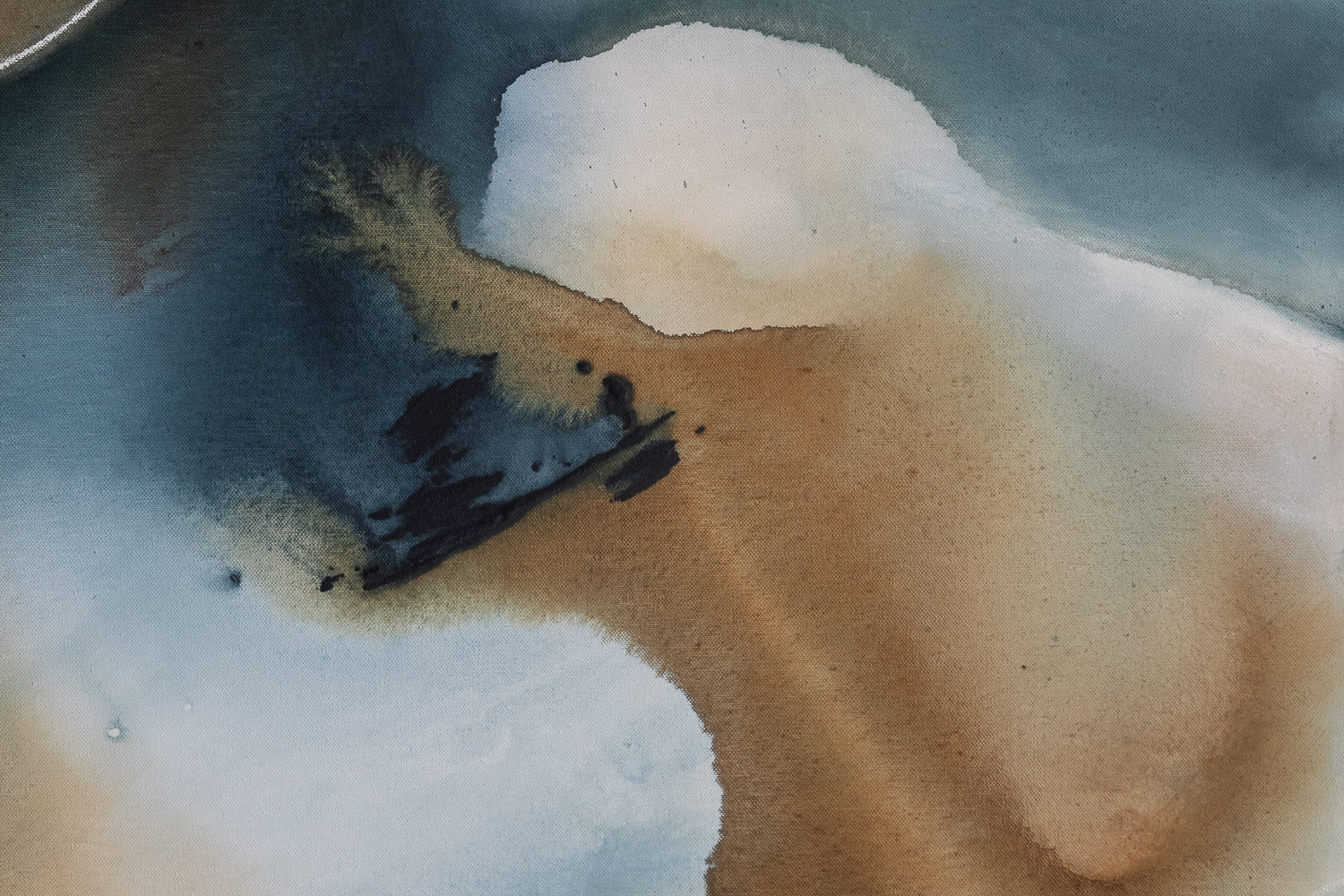 Cloud Burst (diptych) is inspired by the gentle movement of water from the Noosa everglades down to the ocean. The river is alive to me, with a constantly changing palette of green reflections, blues and the shades of sand underneath. This river is a special place for me and one that I visit often. It is a place of contemplation and peace, a place where I feel very much at one with my surroundings, disturbed only by the lorikeets that chatter in the gum trees nearby. This artwork consists of 2 paintings each with the dimensions 92cm W x 122cm H.