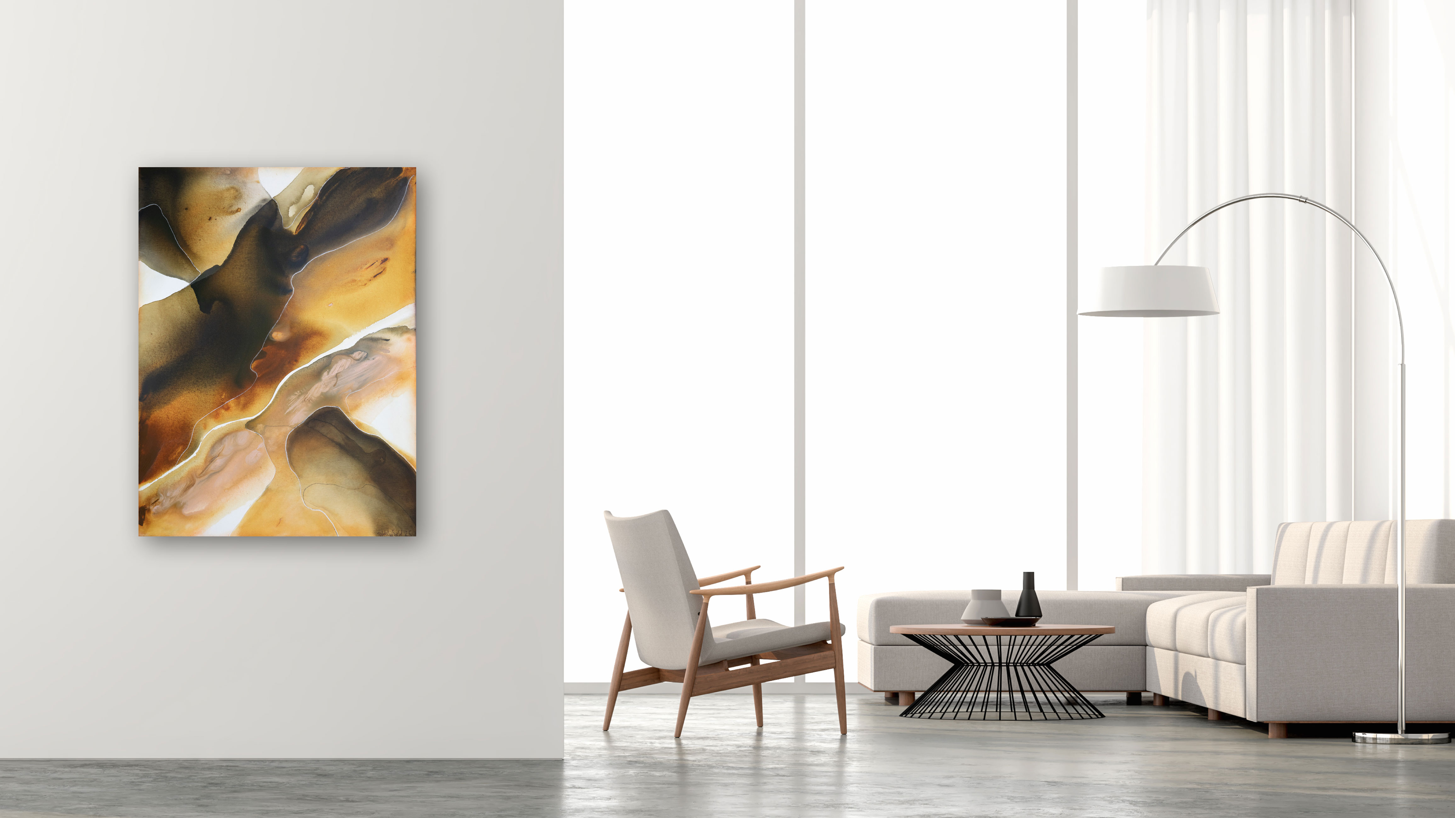 Haze is part of my Marrakesh series focusing on the iconic colours and patterns of this ancient city in Morocco. The historical quarters of these African desert towns are a sensual experience of colour, energy and movement, with maze-like alleys winding through the marketplaces, where vendors sell traditional textiles, pottery, spices and jewellery. I have mixed a variety of desert colours for use in these paintings: ochres, terracotta’s, pinks, and browns, plus a selection of oxide, to create the effect of moving through this unique landscape.