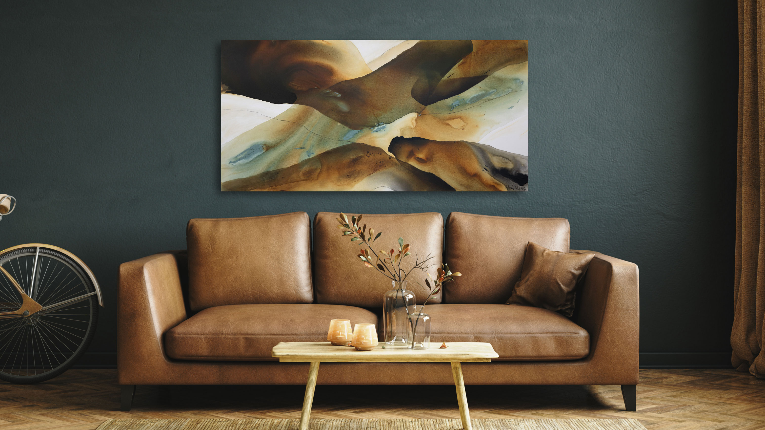 All artworks are ready to hang with a wire on the back.